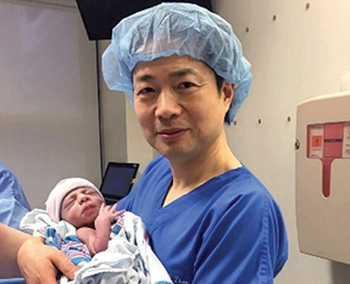 張進醫生抱著5個月大的哈山。美國中文網圖