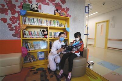 何定學介紹,閱覽區共有2000冊藏書,均由朝陽區圖書館統一配送。在一樓圖書館,公眾可通過公共圖書館自助借還系統借閱和歸還,這些圖書全市通借通還。沒有“一卡通”的家長或患者,通過微信就能線上辦理讀者卡。