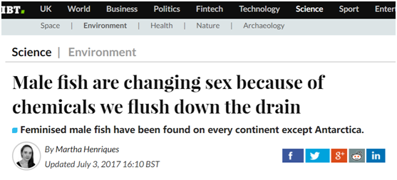 這項研究由英國埃克塞特大學的Charles Tyler教授主導,他是一名環境生物學家和生殖學家,主要研究的方向就是化學物質對野生動物的內分泌干擾。研究顯示,有超過2000種化合物被認為是環境中的類雌激素,這意味著如同人類女性身上分泌的雌激素一樣,這些環境中的類雌激素將給生物體帶來同樣效果。