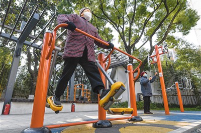 1月6日,在蘇州市姑蘇區(qū)二郎巷社區(qū),社區(qū)居民在鍛煉。