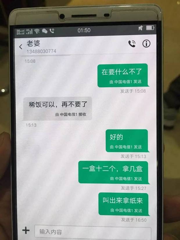 16時50分,丈夫給其發(fā)短信,叫通知護士出來拿紙,但未再回復