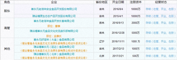 璞谷塘俱樂部對(duì)外投資了2016年11月11日注冊(cè)的崔永元好滋味(大連)食品有限公司、2017年2月13日注冊(cè)的璞谷塘崔永元(延邊)食品有限公司和2017年2月13日注冊(cè)的璞谷塘崔永元(北京)食品有限公司。 此外,崔永元還是崔永元老滋味安全食品開發(fā)股份有限公司的股東之一。該公司對(duì)外投資了崔永元老滋味食品開發(fā)長(zhǎng)春有限公司。