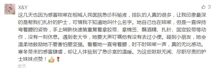 有網(wǎng)友評論,醫(yī)務工作者確實不易,為你點贊的同時也要注意身體,像這樣的評論,網(wǎng)上比比皆是。