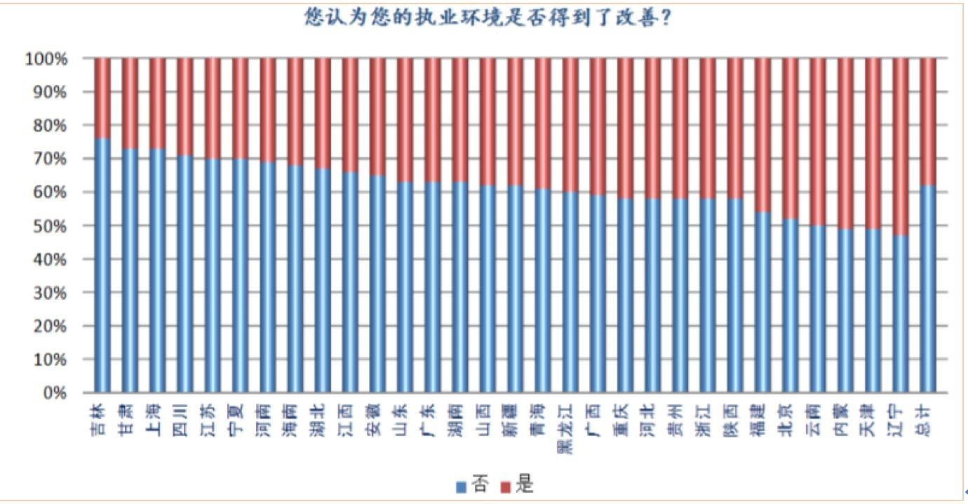 中國(guó)醫(yī)師協(xié)會(huì)于2016年到2017年,在全國(guó)通過定性訪談、定量問卷調(diào)查、定量在線調(diào)查的方式,共計(jì)4.46萬(wàn)家醫(yī)院的醫(yī)師參與調(diào)研,約14.62萬(wàn)醫(yī)師完成了問卷調(diào)查,并在此基礎(chǔ)上出具了《中國(guó)醫(yī)師執(zhí)業(yè)狀況白皮書》,本次調(diào)查是迄今為止針對(duì)醫(yī)師群體最大規(guī)模的執(zhí)業(yè)狀況調(diào)查。