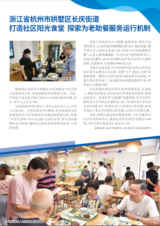 浙江省杭州市拱墅區(qū)長慶街道打造社區(qū)陽光食堂 探索為老助餐服務(wù)運(yùn)行機(jī)制