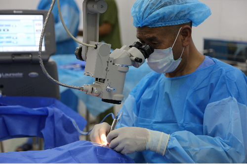 圖為愛爾眼科國際援助醫療隊隊長、愛爾眼科昆明醫院院長龔永祥為患者做手術