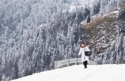圖為2月10日,重慶市黔江區阿蓬江鎮柒坨村村醫帥小云走在去村民家出診的路上。