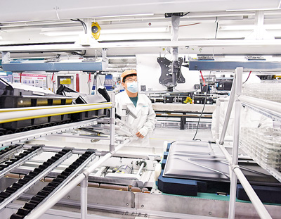 在位于山東省青島經濟技術開發區的海信視像科技股份有限公司黃島基地,生產線運轉繁忙,來自全球的訂單源源不斷。工人們開足馬力生產,滿足市場供應。圖為2月9日,工人加緊趕制外貿訂單。