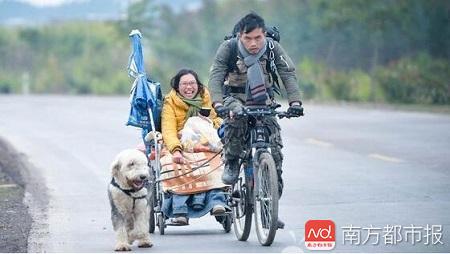 一輛單車,一只犬,一把輪椅,從柳州出發,賴敏和丁一舟2015年初開始環游全國。