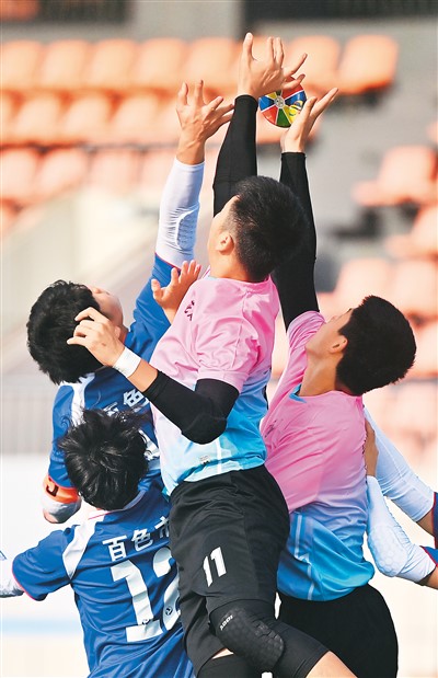 近日,“三月三”廣西花炮邀請賽在廣西壯族自治區柳州市開賽,圖為參賽選手在比賽中爭搶花炮。