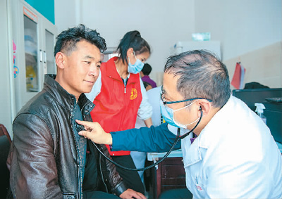 圖為心內重癥中心主任寧尚秋援藏期間為藏族同胞查體。