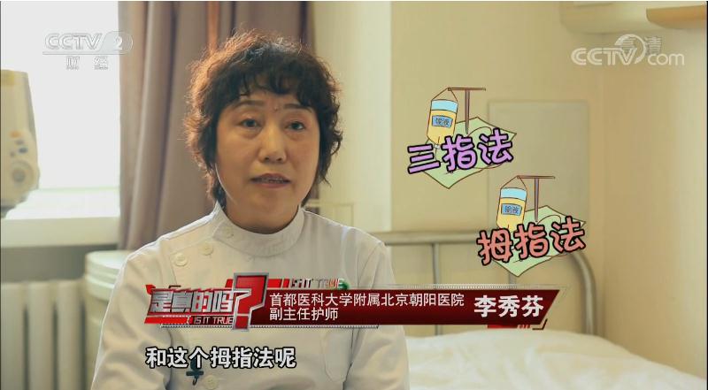 李秀芬提醒:“一般來說,用三指法和拇指法依從度是最高的。輸液結束,護士把針拔除之后,會留一條帶棉紗的小方紗輸液貼蓋在針眼處,然后讓病人用他的三個手指,在方紗上方一到三公分的位置按壓下去。”
