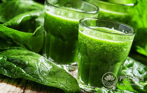 功能:菠菜汁中含有β-胡蘿卜素,其含量?jī)H次于胡蘿卜,β-胡蘿卜素可以預(yù)防動(dòng)脈硬化,維持皮膚、頭發(fā)、牙齒的健康。維生素C可以預(yù)防和治療感冒,并有美化肌膚、預(yù)防癌癥的作用。
