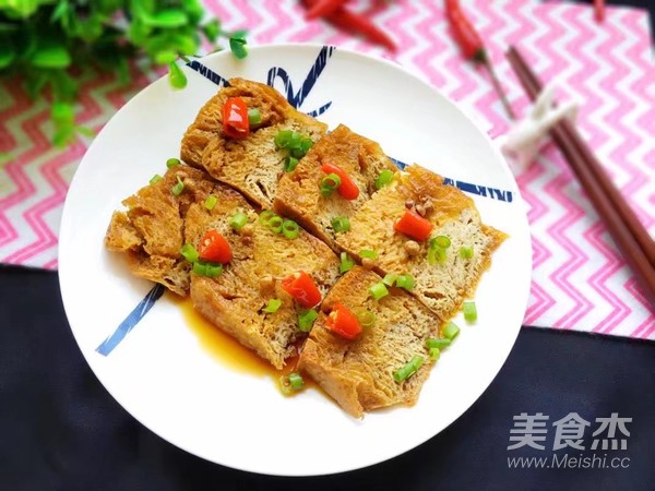 15.將豆腐泡放入其中浸泡變軟,使豆腐泡充分吸滿汁水即可
