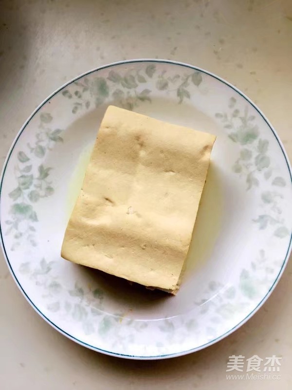 1.豆腐洗凈放入一個(gè)盤中控出水份