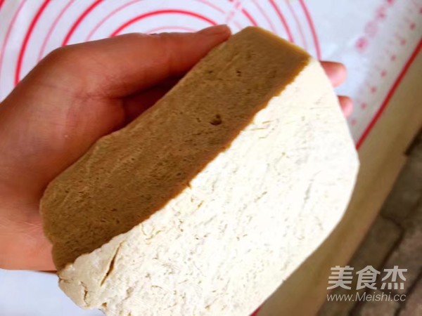3.凍結(jié)實(shí)的豆腐取出放在手掌中,用另一只手按壓出水分