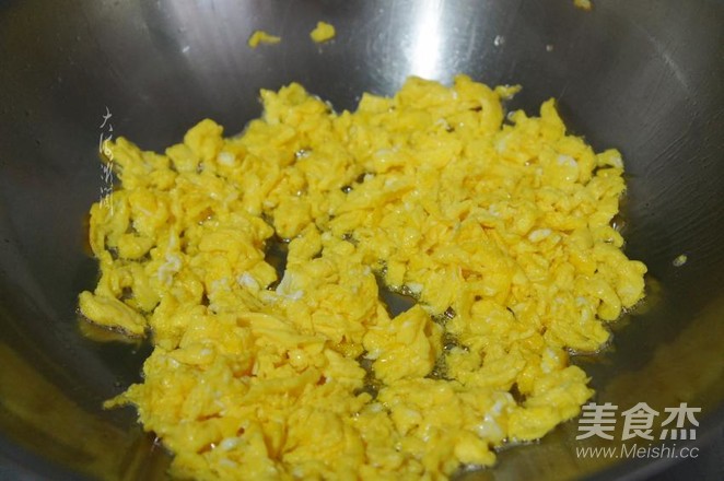 雞蛋打散,炒鍋加入適量的油,煎熟雞蛋