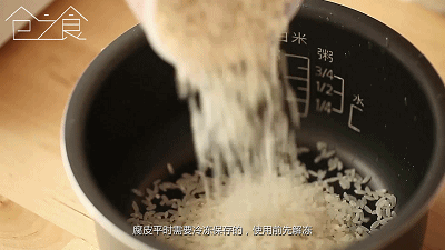 洗米煮飯,煮的時候比平時煮飯少放一點水。