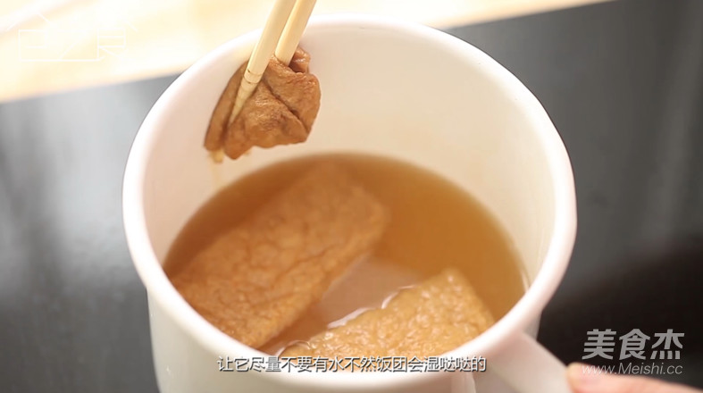 (讓腐皮盡量不要有水,不然飯團會濕噠噠)撈出來后展開晾涼。