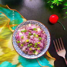 木槿花洗干凈控水,蒜瓣去皮切末、蔥洗凈切末。