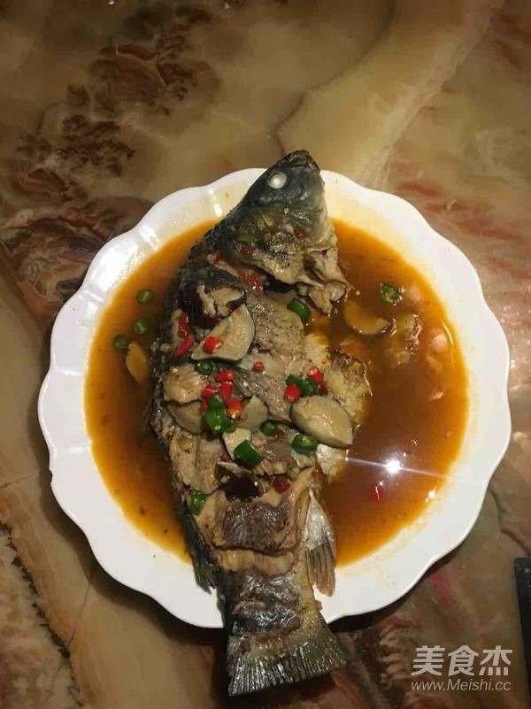 熱鍋下油,先放豆瓣醬,出紅油。再放蒜末,再放蔥姜沫。加開水莫過魚。放生抽,白糖。中火燉5分鐘。