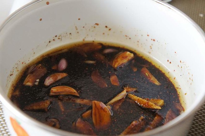 蔥姜去皮洗凈切片,取大盆將橄欖油、蠔油、生抽、五香粉、辣椒粉、胡椒粉、蔥姜調和在一起