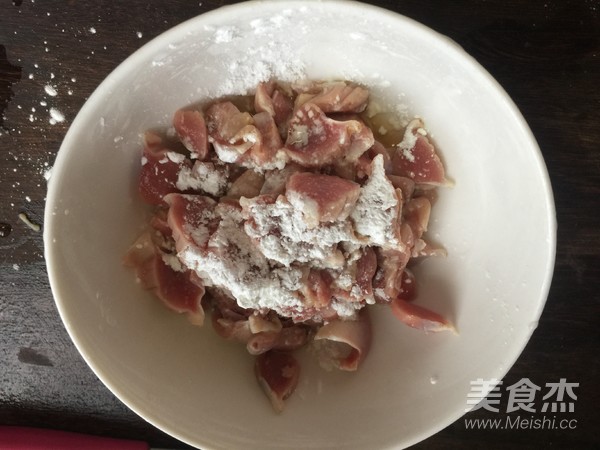 放入碗里加點(diǎn)料酒、鹽和生粉腌制10分鐘