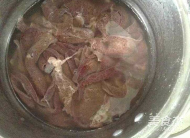 放到盆里,加水、鹽和少許醋浸泡,去掉血沫。