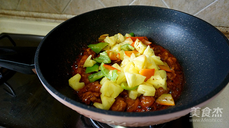 19.最后放入先前炒過的青紅椒菠蘿,翻炒均勻就可以出鍋啦