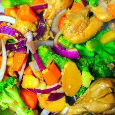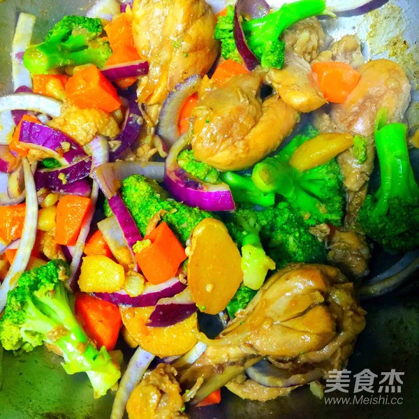 將西蘭花、胡蘿卜、洋蔥倒入,大火翻炒出鍋!