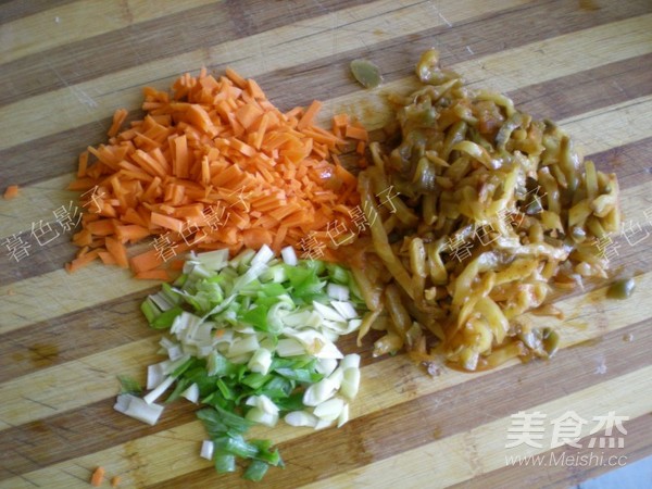 蔬菜大蔥全部切小塊,榨菜泡水捏出水份切幾刀