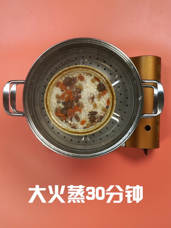 加入枸杞、葡萄干,加水清洗浸泡20分鐘