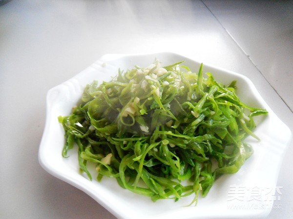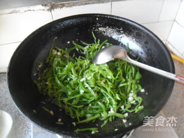 鍋燒開水,加少許鹽,放入扁豆絲,焯煮2分鐘