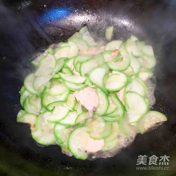 加入角瓜片,用中大火炒,其間加入適量鹽。
