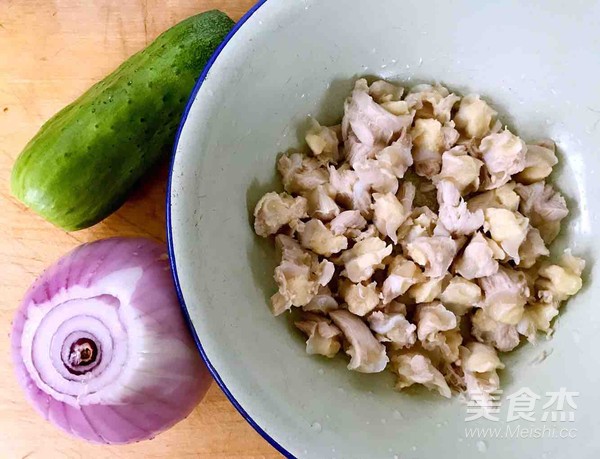 4.切好的圓蔥、黃瓜、雞脆骨放入容器中