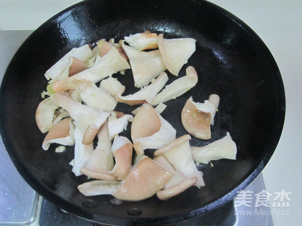 6.煸炒豬肚菇微微發軟時放入絲瓜進去翻炒;
