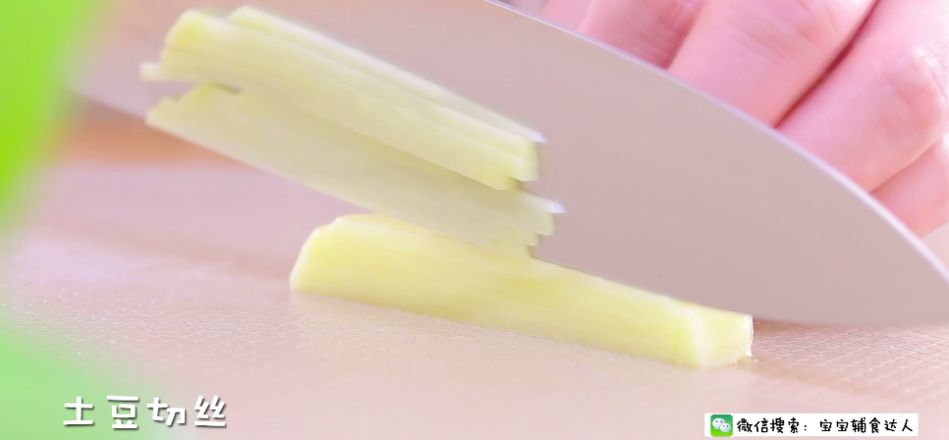 土豆皮洗凈去皮,切成細絲。