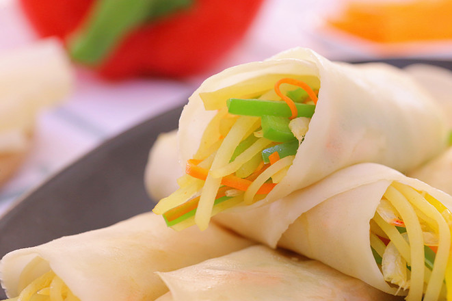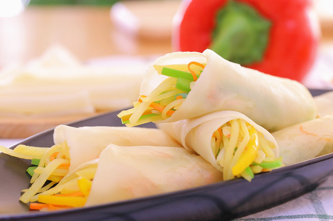 胡蘿卜、青椒、黃椒洗凈,切細絲備用。