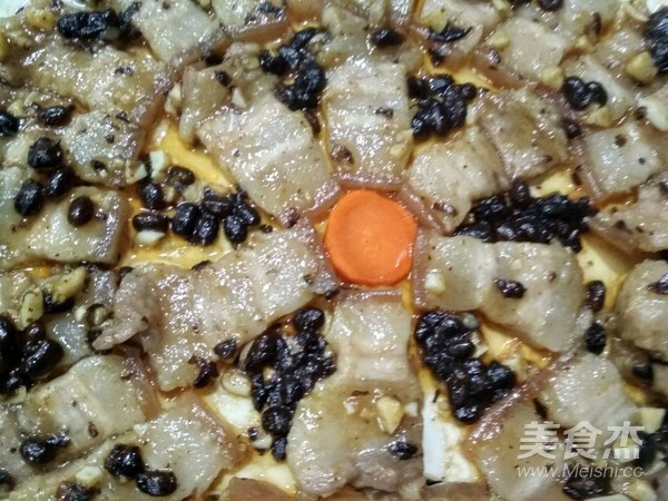 調好味的五花肉平整放好在碟中,放入鍋中蒸15分鐘。