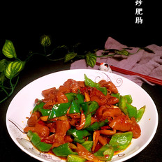 我是喜歡吃酥軟的肥腸,所以提前用高壓鍋鹵制了,喜歡有嚼勁的,也可以直接把肥腸炒熟