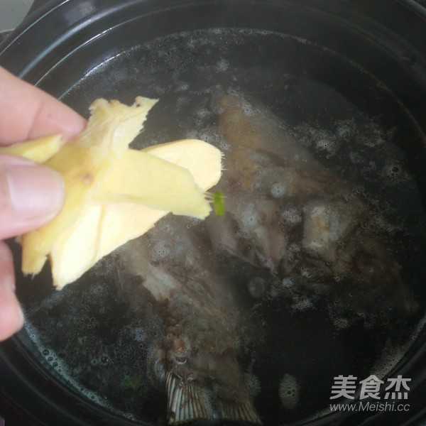煎好的魚和姜片同時放入砂鍋中加入開水,胡椒粉煮五分鐘這樣子