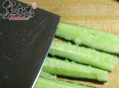 1.黃瓜洗干凈,對半剖開,用刀輕輕地拍一下