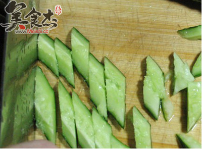 2.黃瓜切菱形,然后加鹽腌制10分鐘