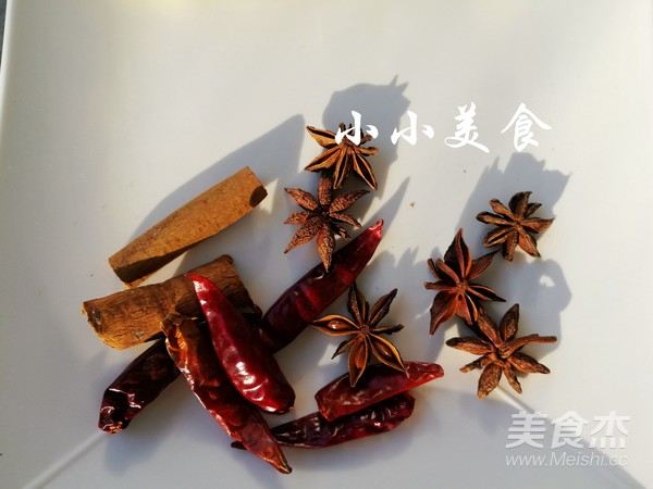 11.放入蔥段,姜片,蒜、辣椒、大料、桂皮,煸炒出香味