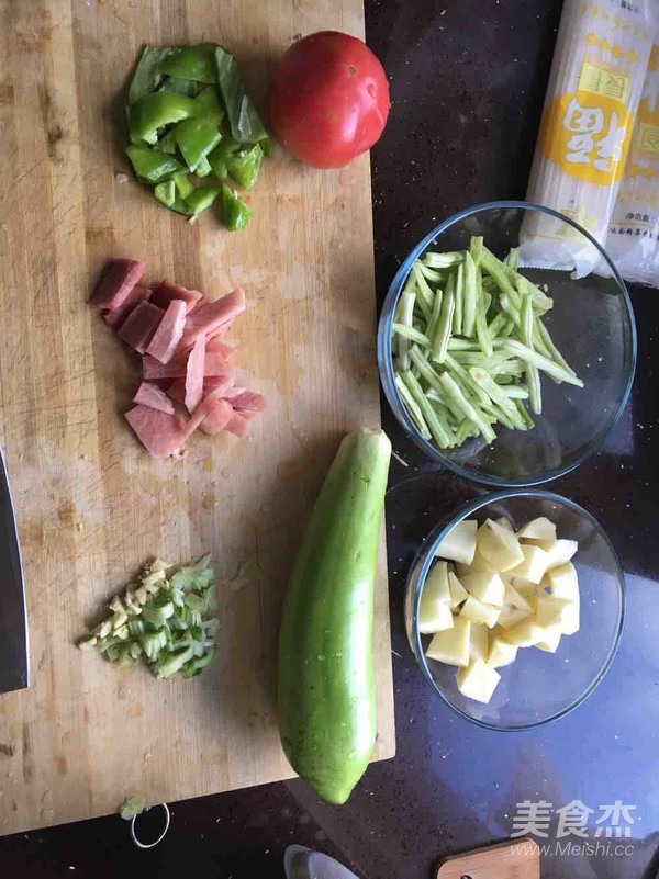 1.首先大蔥大蒜切好 精肉切片 豆角切成跟圖一樣(有利無入味) 土豆切塊 尖椒切片 茄子洗好了先不動(dòng) 西紅柿也洗好了放著!一切準(zhǔn)備就緒!