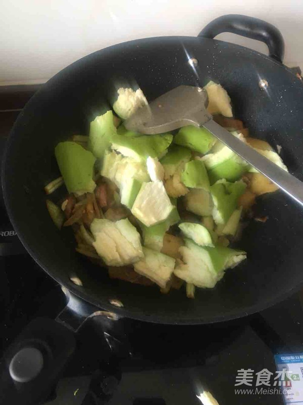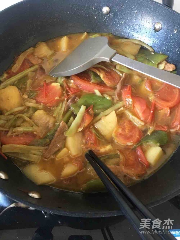 6.當(dāng)豆角5成熟放入土豆塊 繼續(xù)翻炒