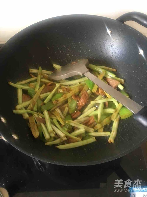5.豬肉5成熟 放入豆角繼續(xù)翻炒