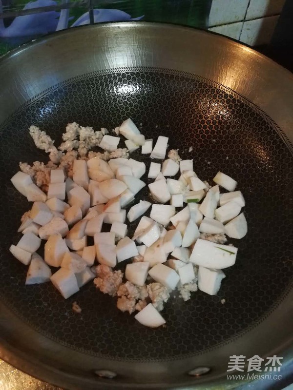 去皮芋艿切成小丁