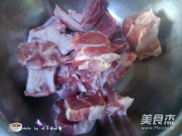 鍋里加入適量水,加入適量料酒,放入羊排焯水