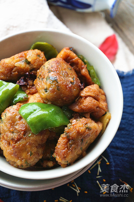 燜煮至湯汁收干,最后放上青椒炒至青椒斷生即可